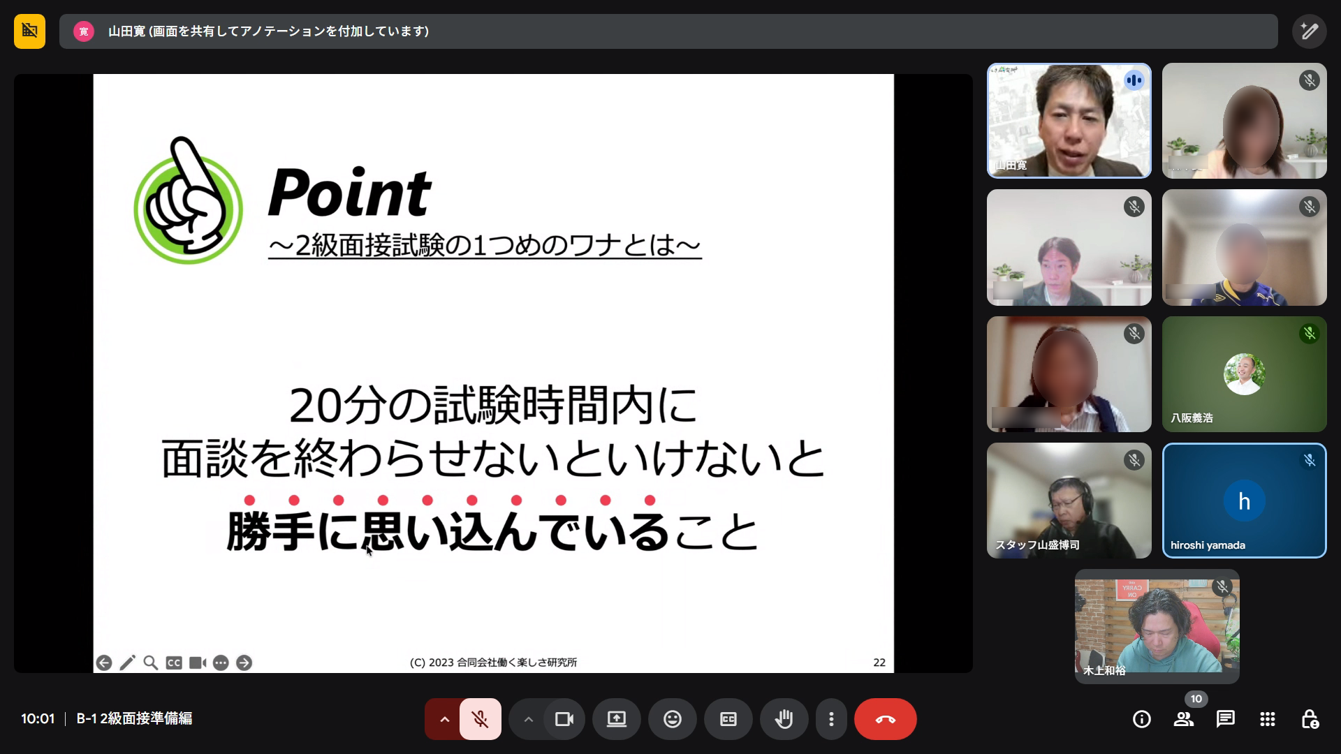 本日実施した『2級キャリアコンサルティング技能検定対策講座 面接実践編』は