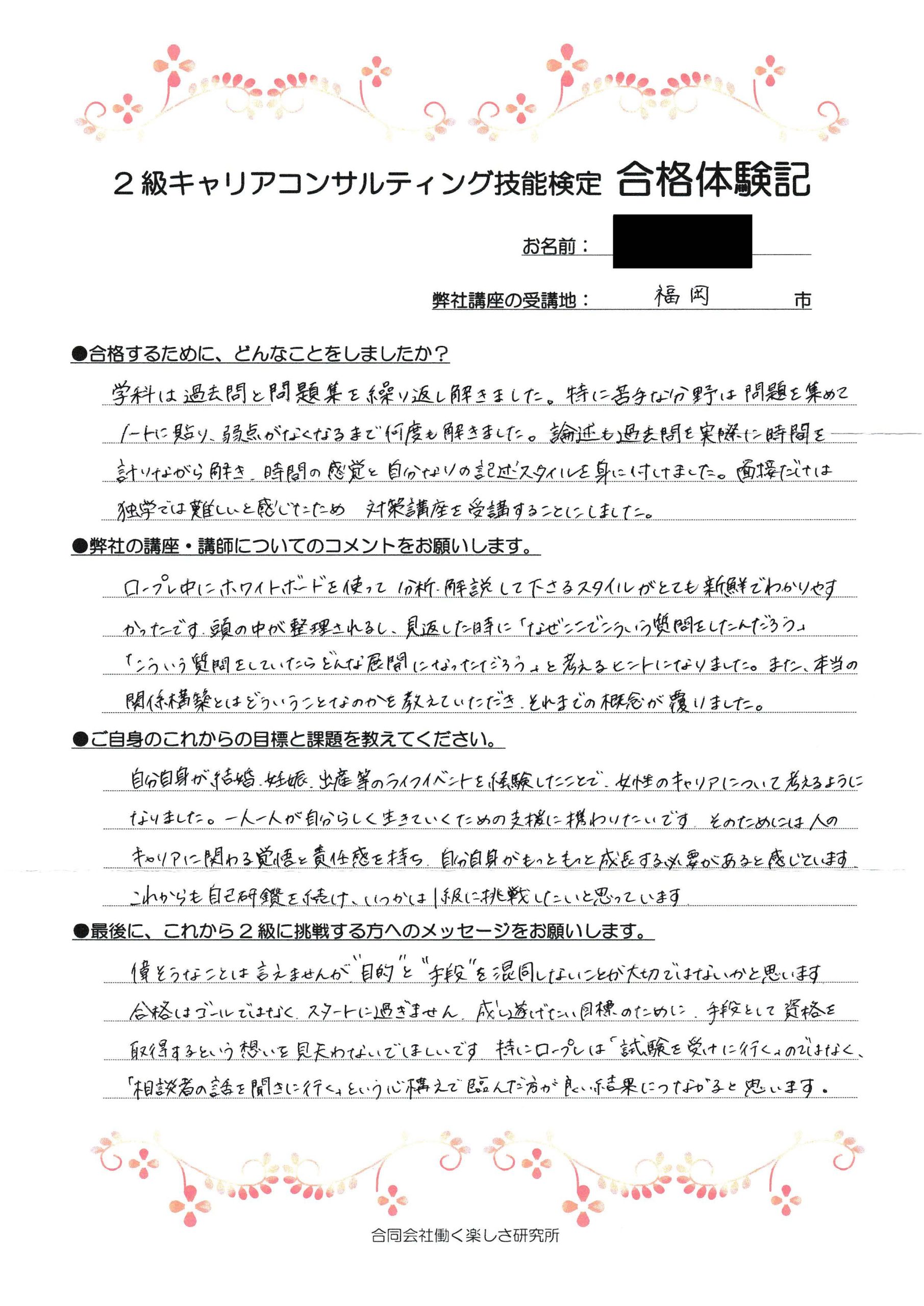 ブログ 2020.04.15 2023.10.23 合格体験記本当の関係構築とはどういうことかを教えていただきました。 執筆者 | 合同会社働く楽しさ研究所 福岡県・企業領域・第23回合格 ロープレ中にホワイトボードを使って分析・解説してくださるスタイルがとても新鮮でわかりやすかったです。頭の中が整理されるし、見返したときに「なぜここでこういう質問をしたんだろう」「こういう質問をしていたらどんな展開になっただろう」と考えるヒントになりました。また、本当の関係構築とはどういうことなのかを教えていただき、それまでの概念が覆りました。 2級CC技能検定対策講座のご案内ページはこちら 一覧へ戻る