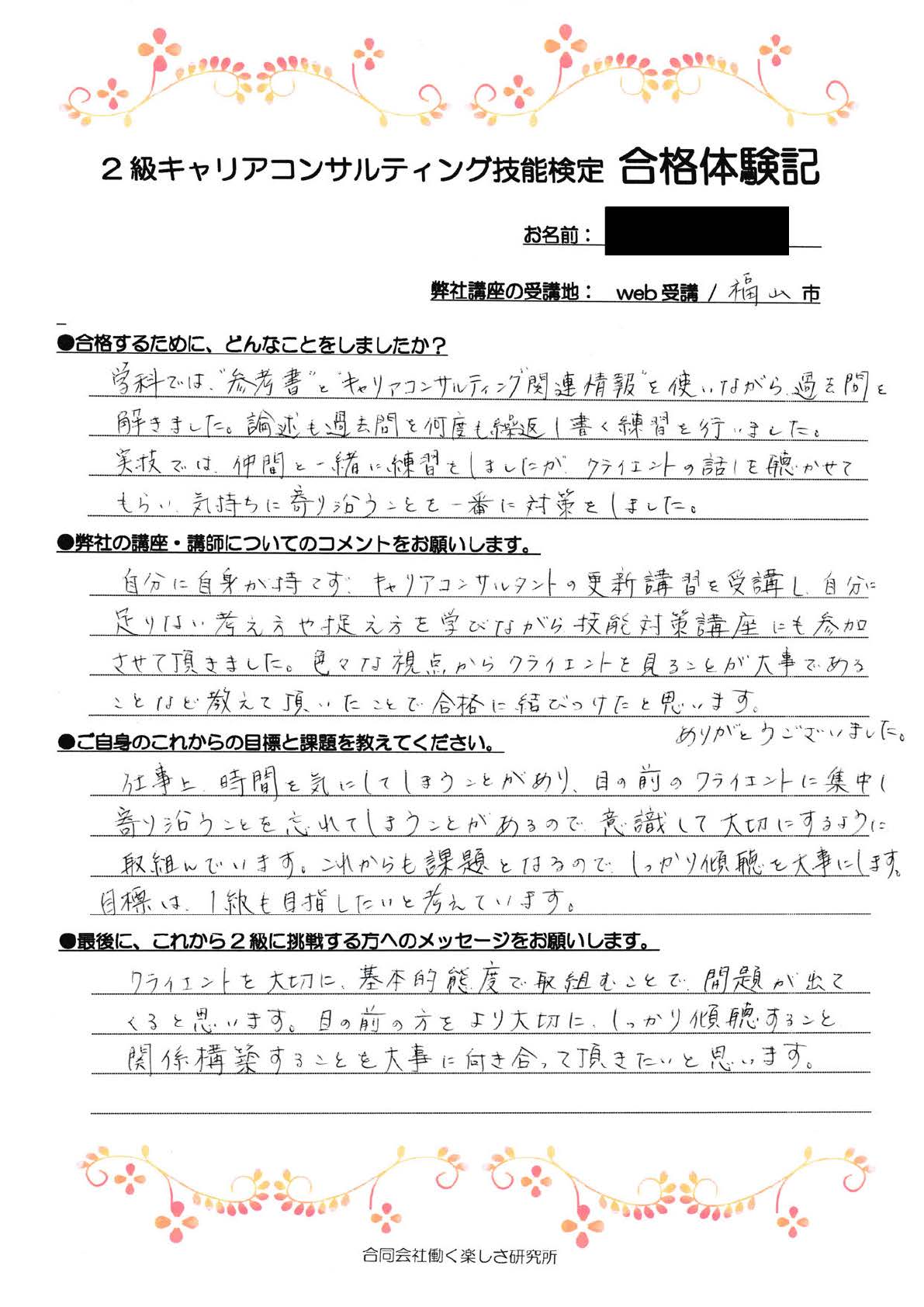 ブログ 2022.11.10 2023.10.27 合格体験記目の前の方をより大切に、大事に向き合っていただきたいです。 執筆者 | 合同会社働く楽しさ研究所 広島県・需給調整機関領域・第28回合格 「CLを大切に、基本的態度で取り組むことで問題が出てくると思います。目の前の方をより大切に、しっかりと傾聴すること・関係構築することを大事に向き合っていただきたいと思います。」 2級CC技能検定対策講座のご案内ページはこちら 一覧へ戻る
